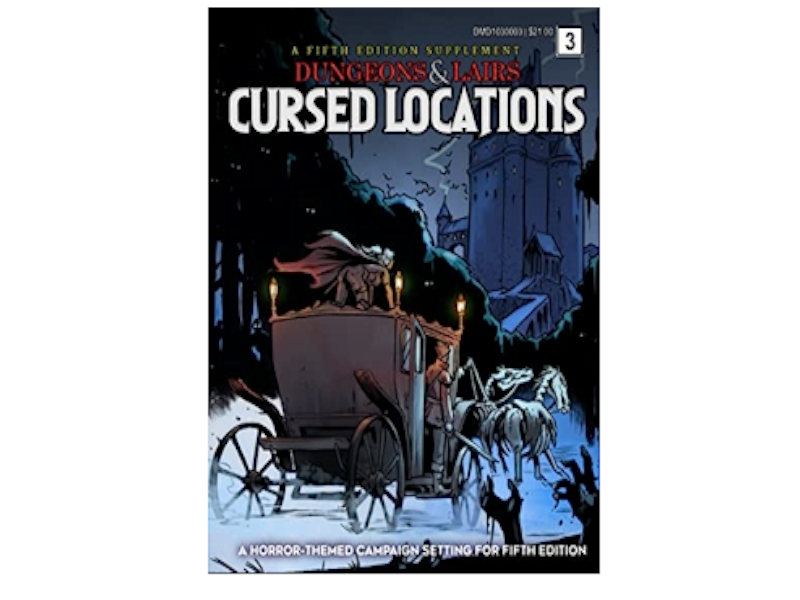 Cursed Locations features five horror adventures perfect for Fifth Edition games. Each adventure offers unique challenges, exciting battles and a compelling story. Explore the mysteries of the Haunted Castle, survive the clutches of zombies in Zombie Farmhouse or discover the dangers of the Werewolf Village