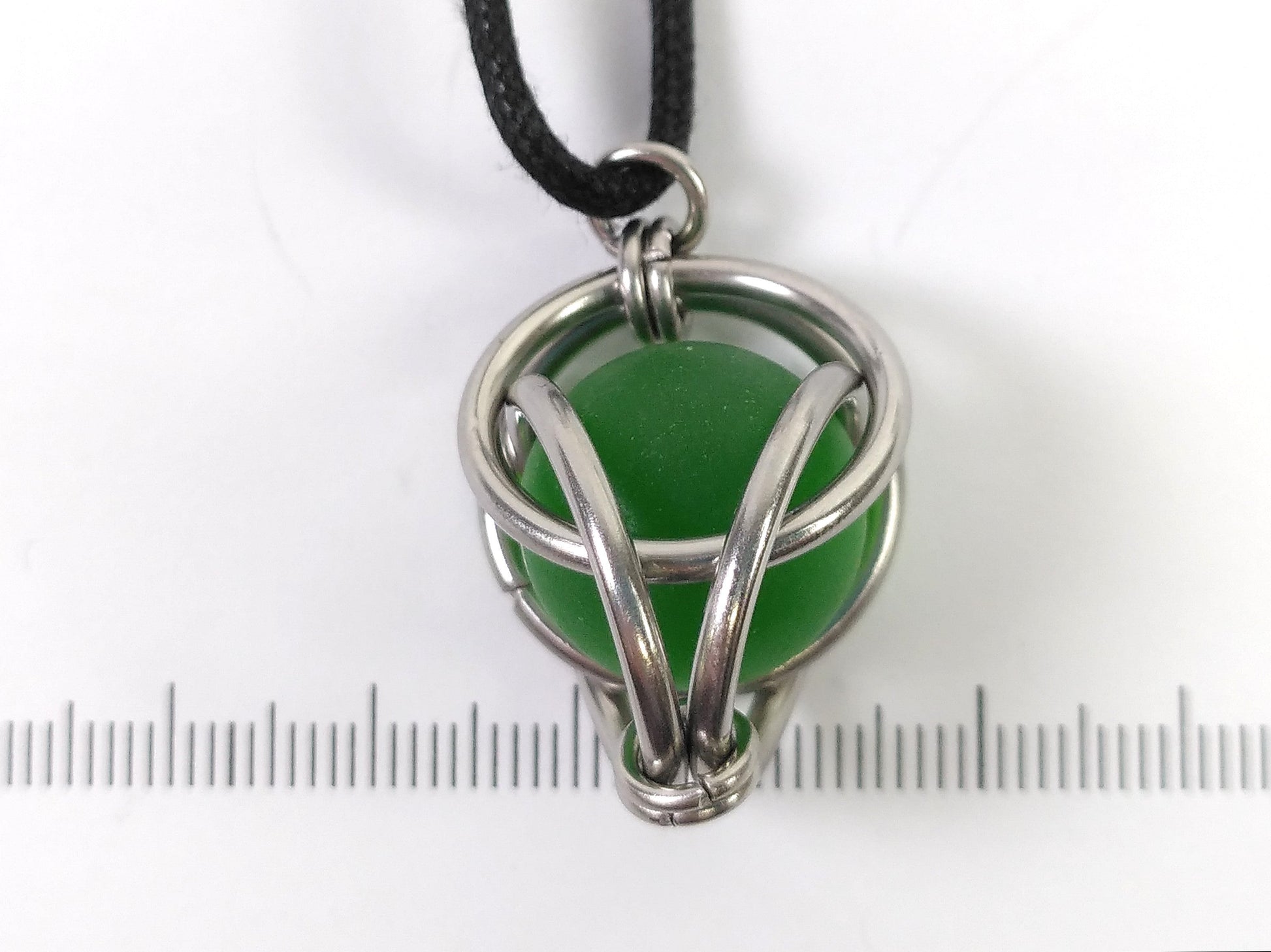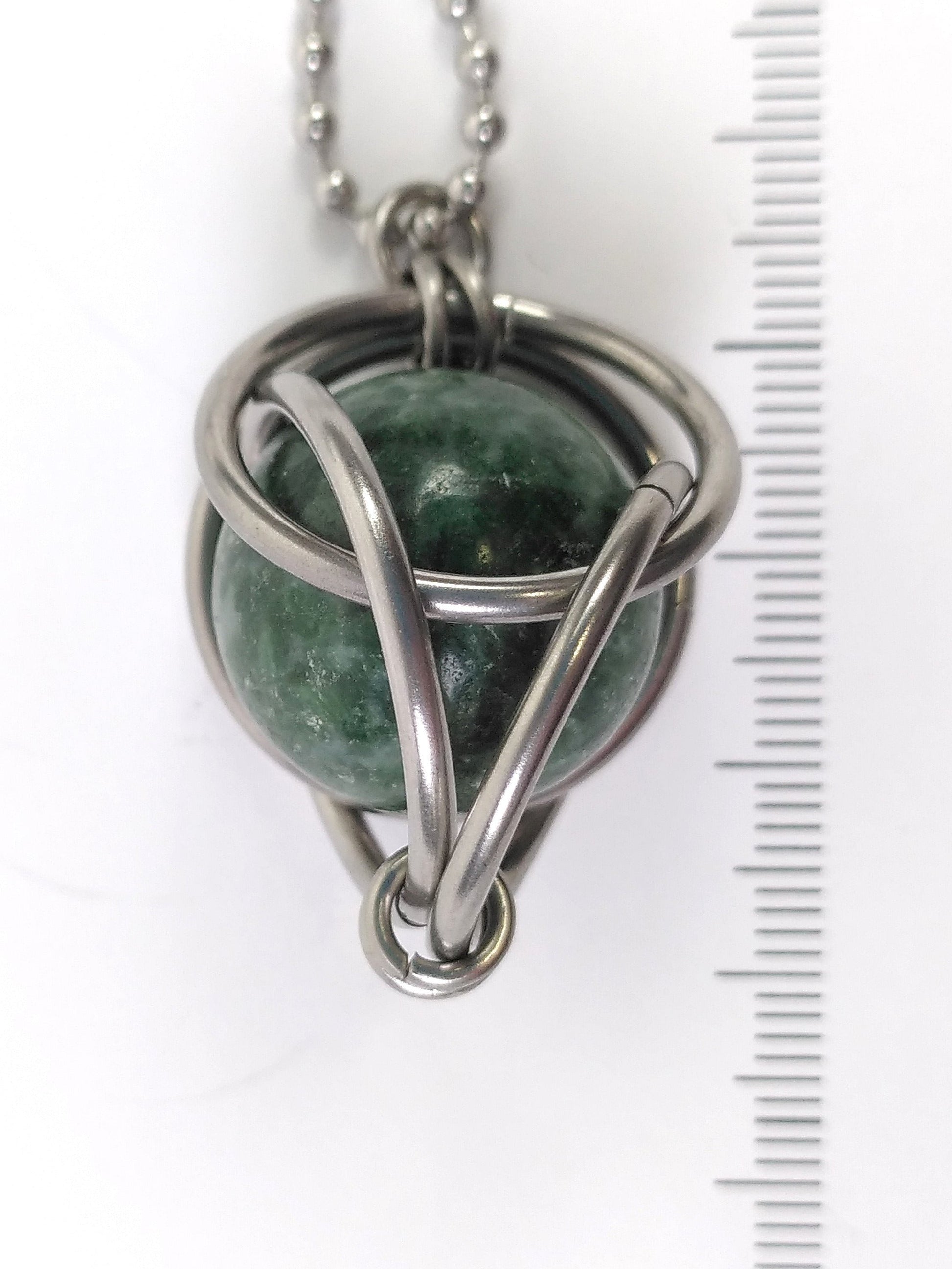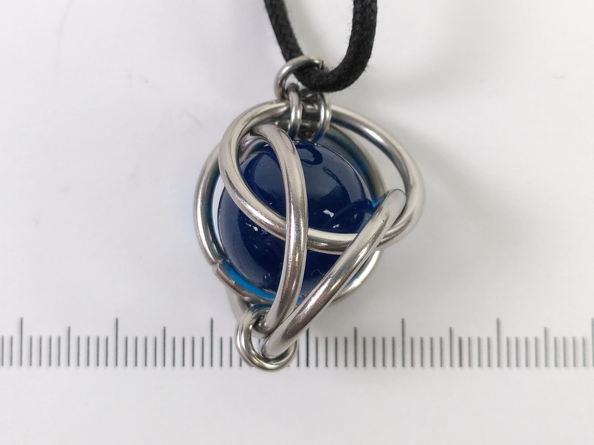 De Andromeda dobbelsteen hanger is hand gemaakt van in elkaar grijpende roestvrij stalen ringen. Het item in het hart van de hanger kan niet worden verwisseld, wassen koord of metalen ketting inbegrepen.