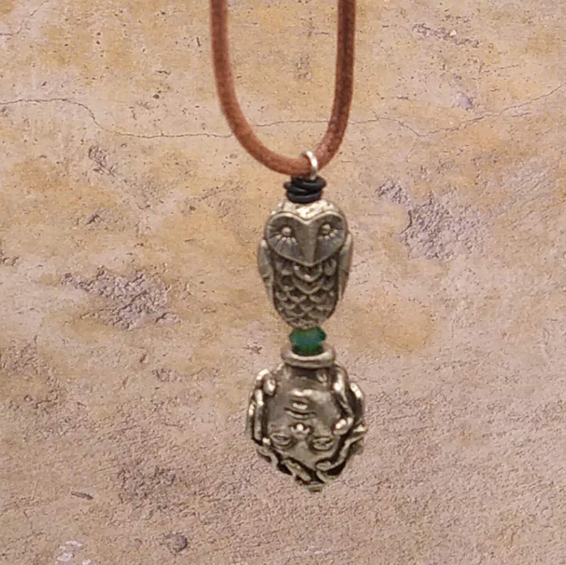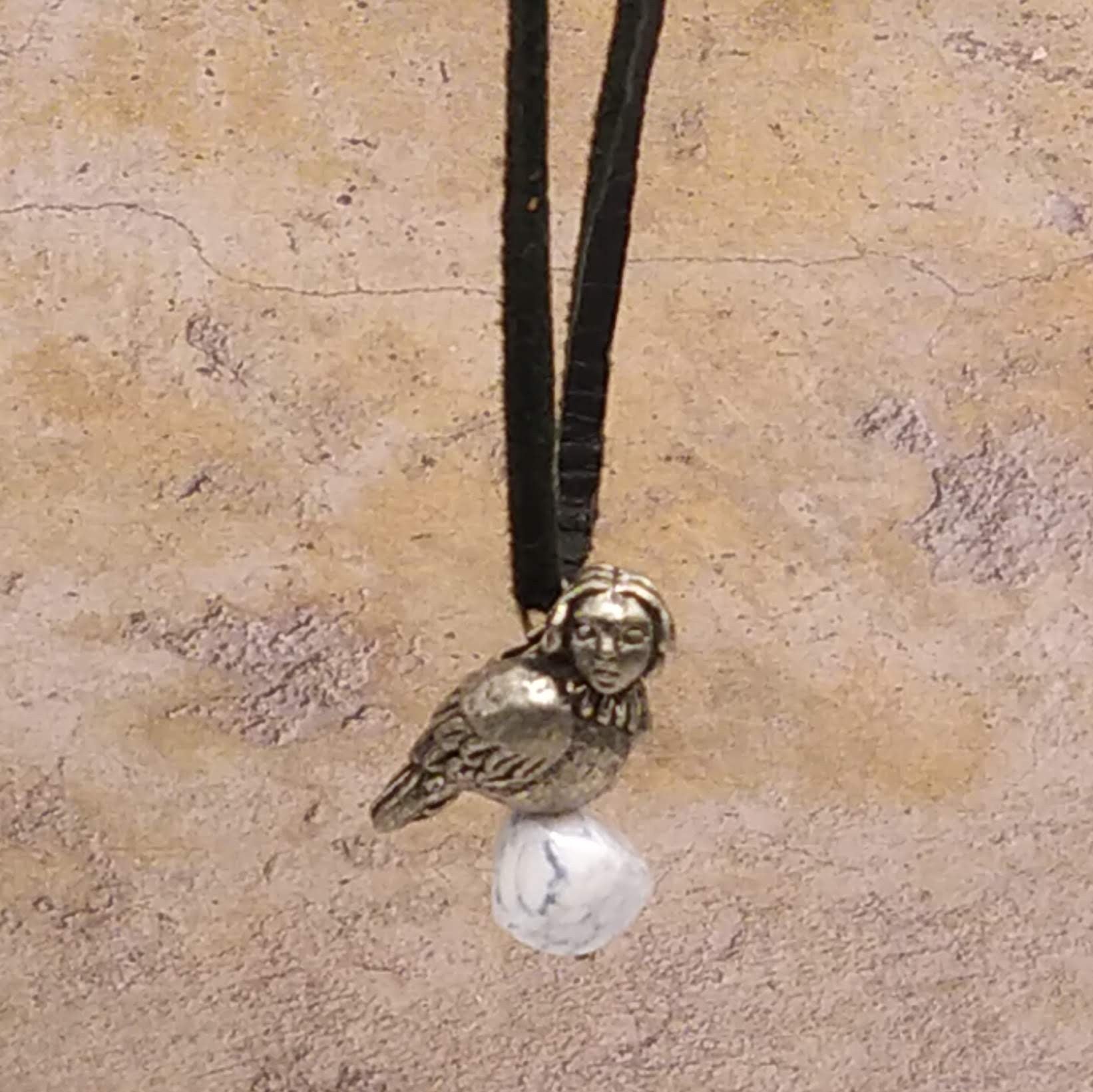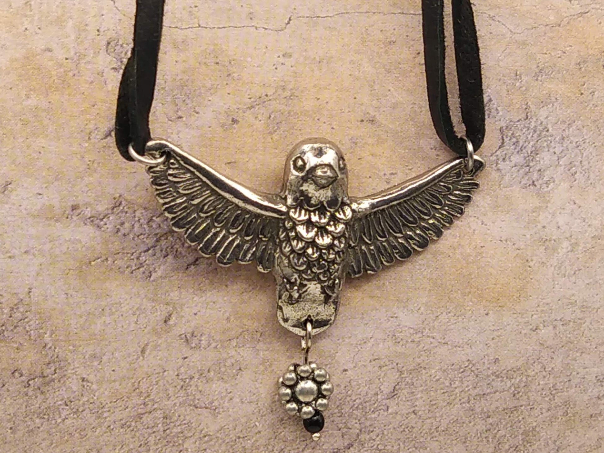 Een collectie kettingen met verschillende vogels, vogelachtige wezens, dingen die vliegen of dingen met vleugels. Al deze kettingen worden geleverd met een gewaxt katoenen koord of een leren koord in bruin of zwart (zie foto's).