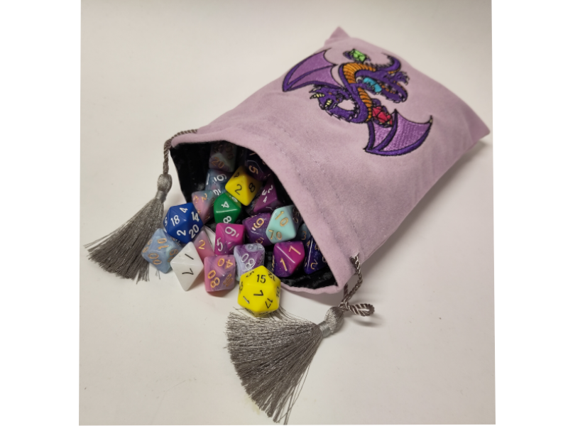 This pouch offers space for approximately 140 individual dice, or 20 polydice sets.