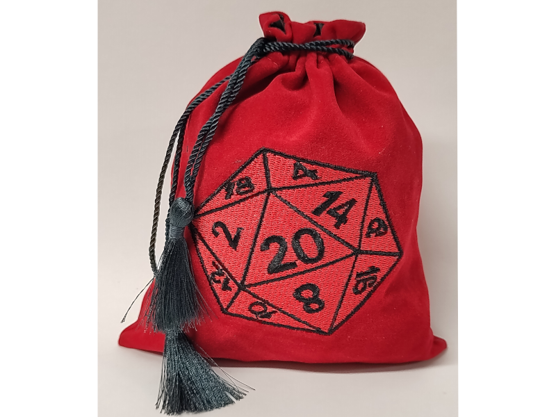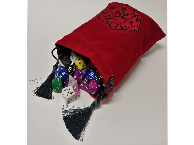 This pouch offers space for approximately 140 individual dice, or 20 polydice sets.