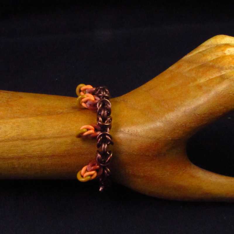 Armband - Byzantijns - Aluminium - Rubber - Bruin - Oranje - Rood