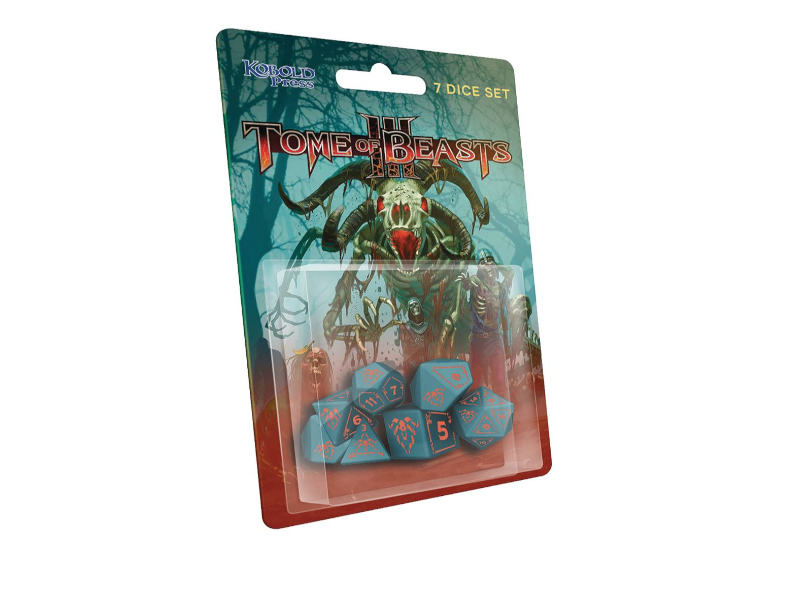 This beautiful set of 7 high quality dice features engraved icons and the Bone Lord design from Tome of Beasts 3. This is the perfect accessory to let fly when monsters hit the table!