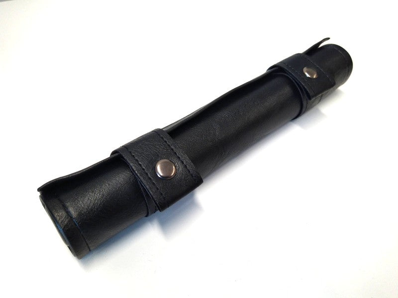 The ends of the cover are reinforced with wooden caps so that it does not flatten in your bag, it closes with metal snaps and rolls up to the size of a normal pencil case.