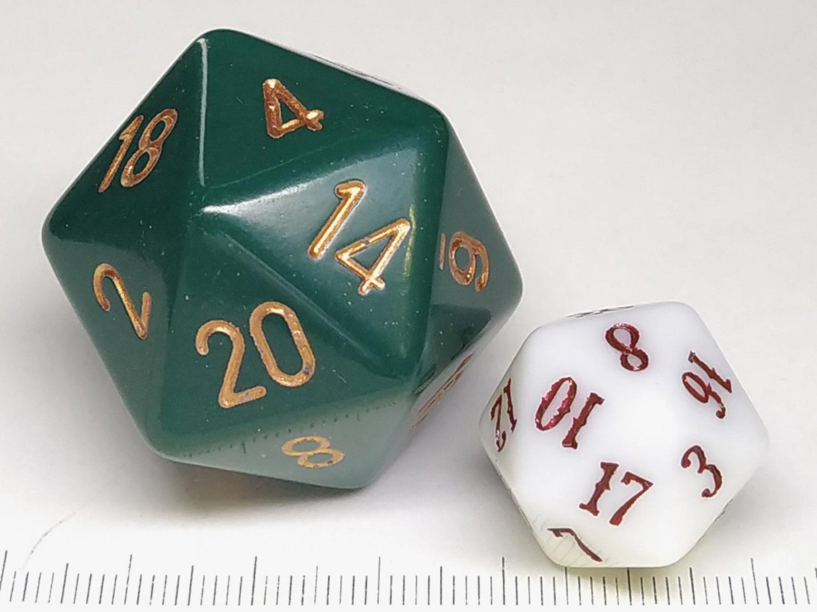Op de foto staat de dobbelsteen ter vergelijking naast een dobbelsteen van normaal formaat getoond. Deze wordt niet meegeleverd.