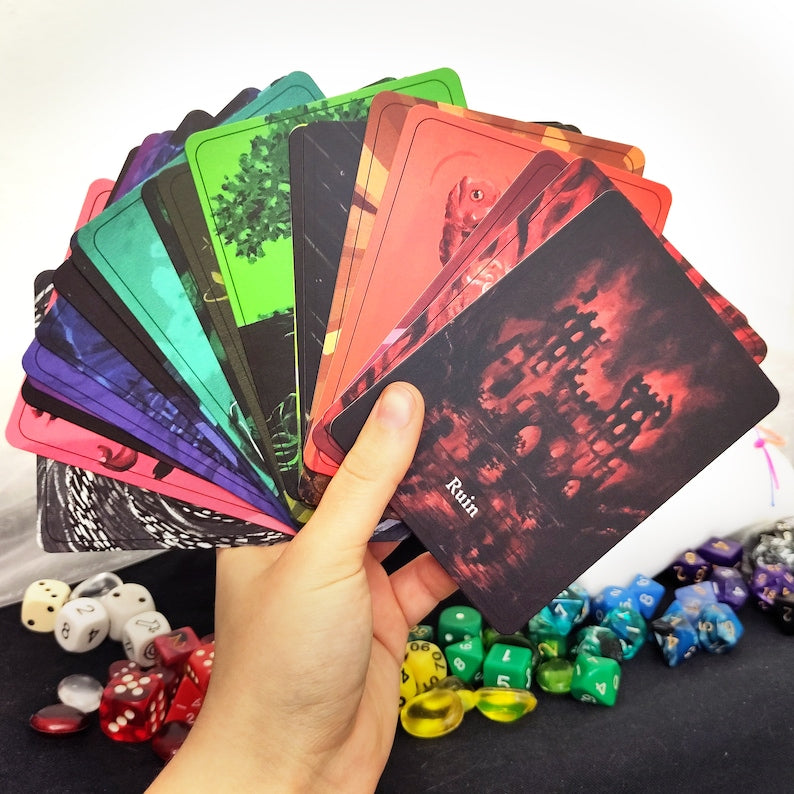 Kwaliteit heeft de hoogste prioriteit, ik heb het deck ontworpen voor een leven lang rollenspel! The Deck wordt lokaal geproduceerd in een C02-neutrale drukkerij met uitsluitend bio-veganistische inkten en FSC-papier. Het is groter dan de meeste kaarten, met 22 kaarten van 90x120 mm, vergelijkbaar met jumbo-tarotkaarten. Het Deck of Many Things - Rainbow Edition is gedrukt op zwaar hoogwaardig FSC-papier (450gr/m2) en mat gelamineerd, en wordt geleverd in een stevige doos met deksel en ophoging.
