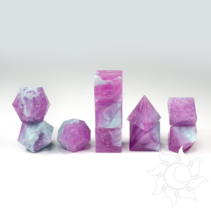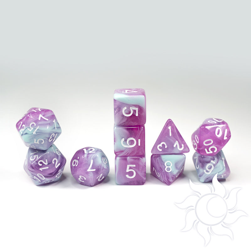 The Starstruck collection is Eclipse Dice's first collection of polyhedral dice. These lovely polyhedral dice were inspired by the beautifully colored backgrounds of one of the most influential anime series of the 90s: Sailor Moon.Â