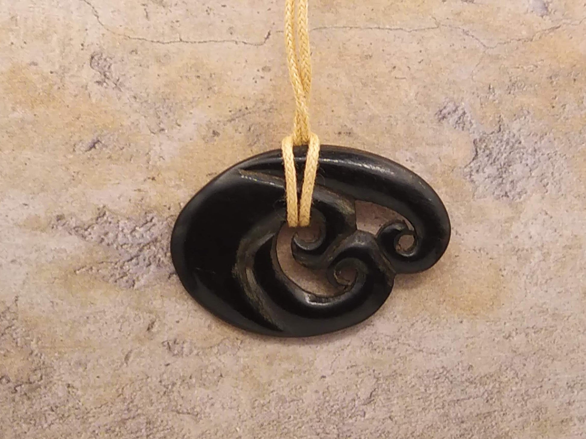 Een kleine collectie gebogen hangers, twee merrie's gemaakt van hoorn en de oneindige lus is gemaakt van steen. Deze kettingen worden geleverd met een leren of gewaxt koord in bruin of zwart (9zie foto's).