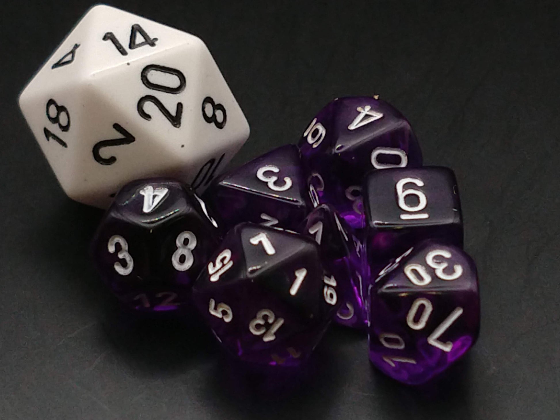 Mini polydice set - Translucent Purple w/white