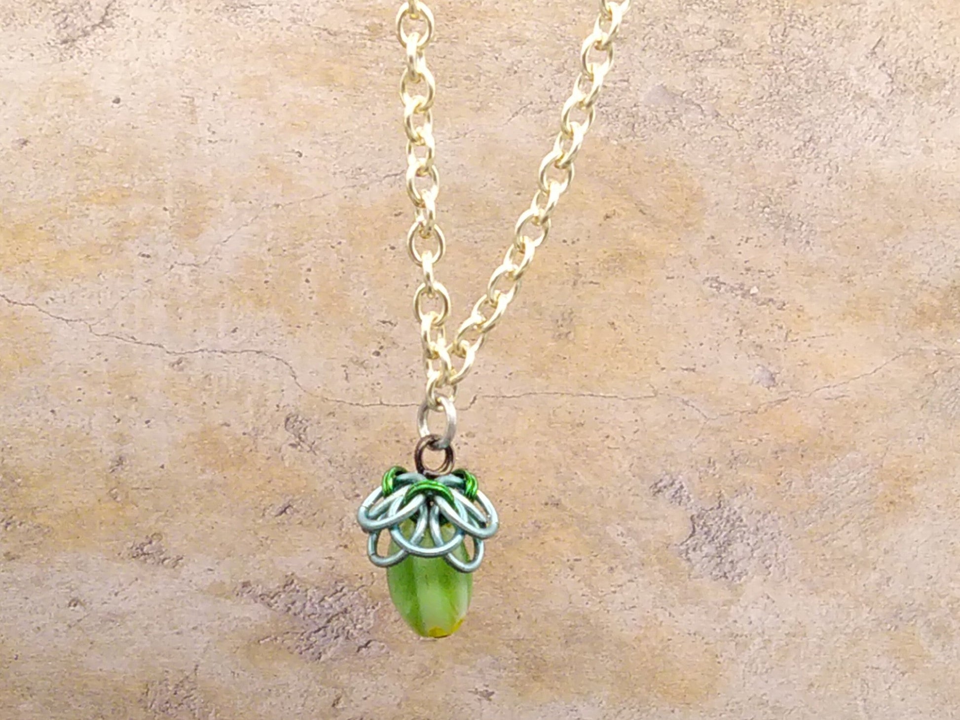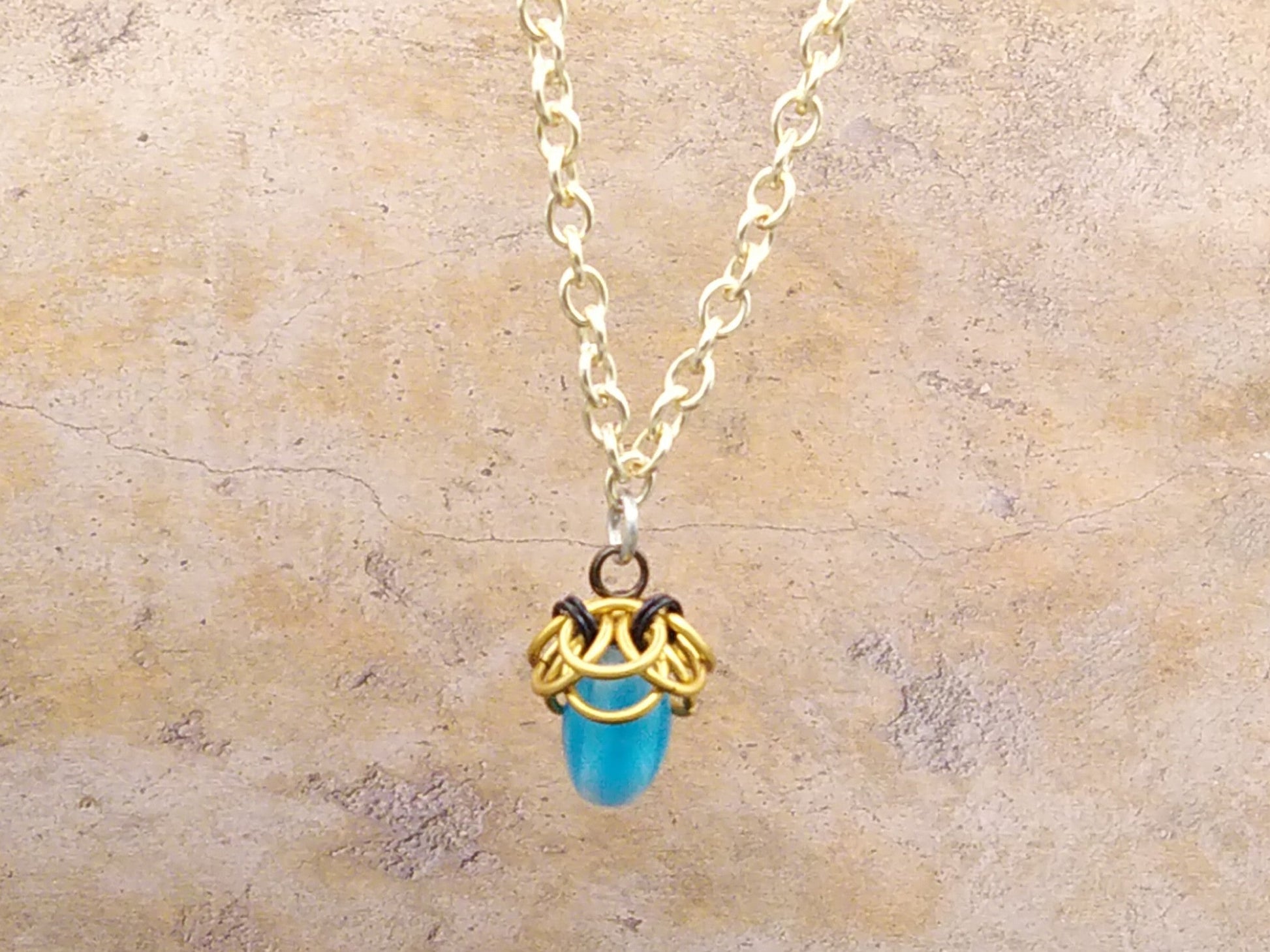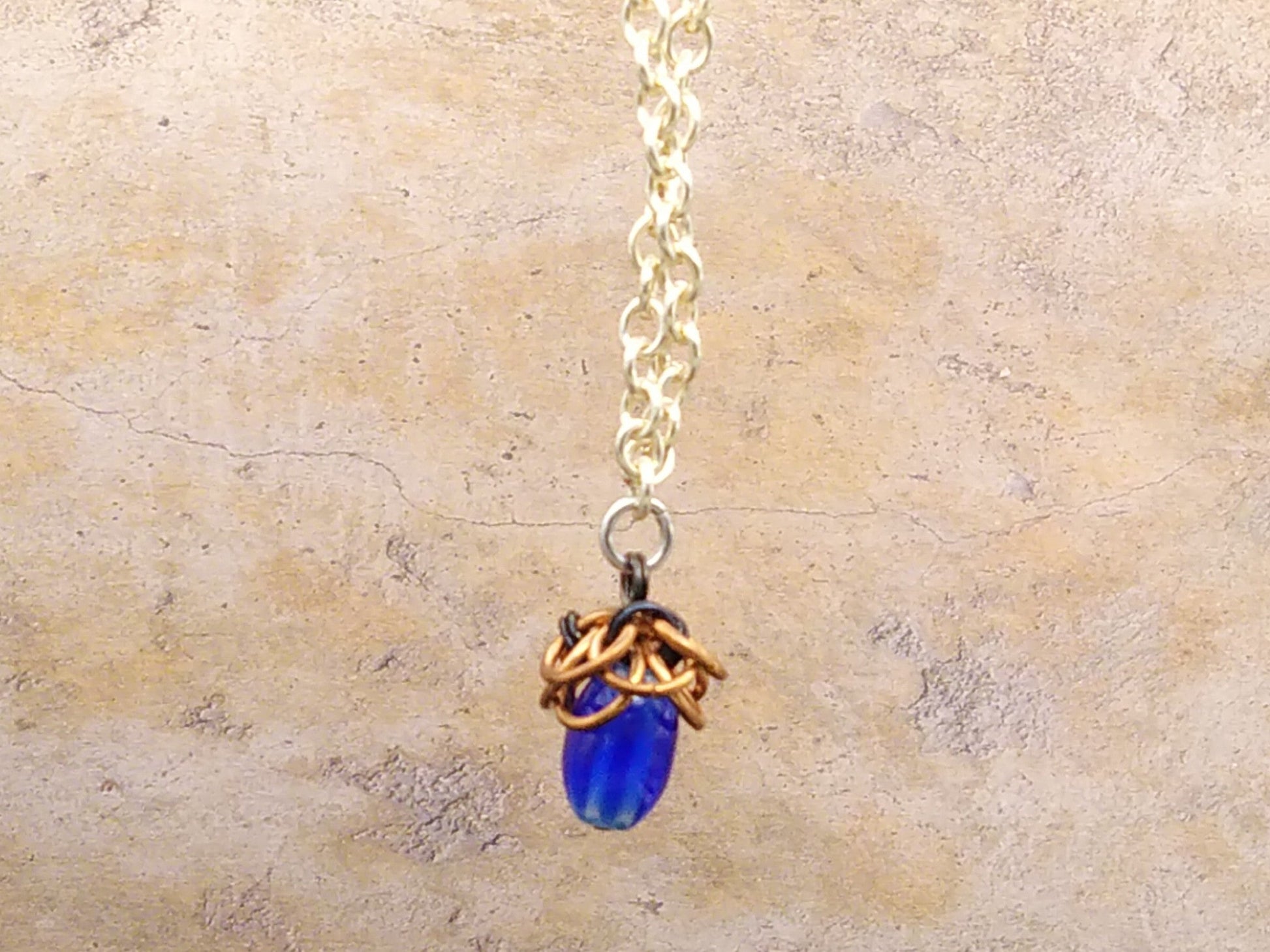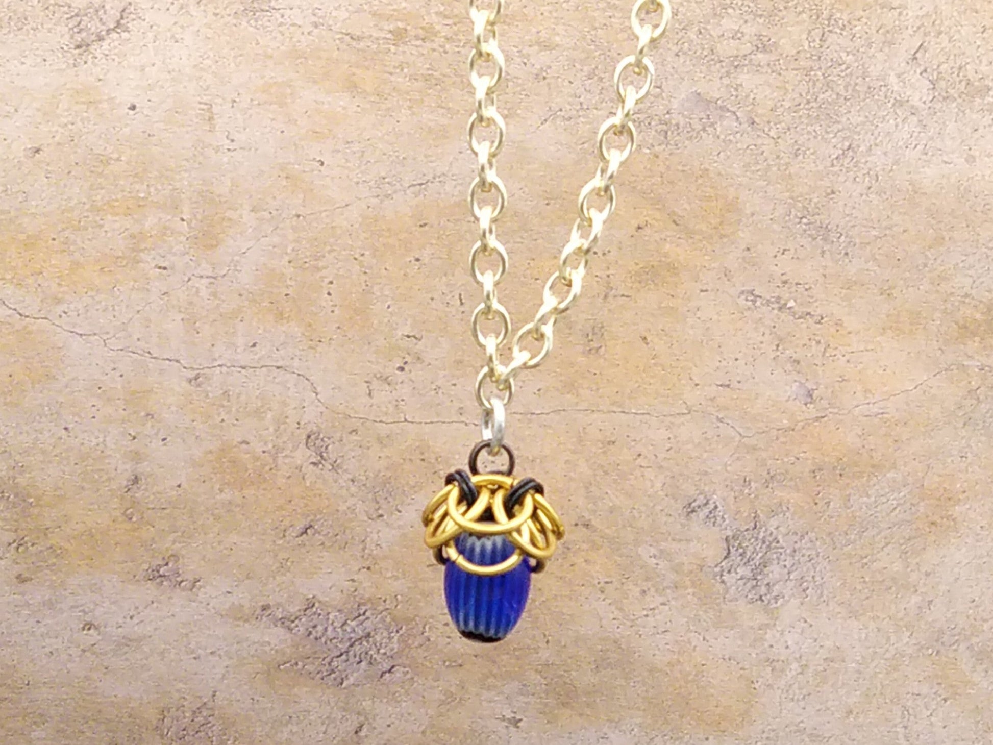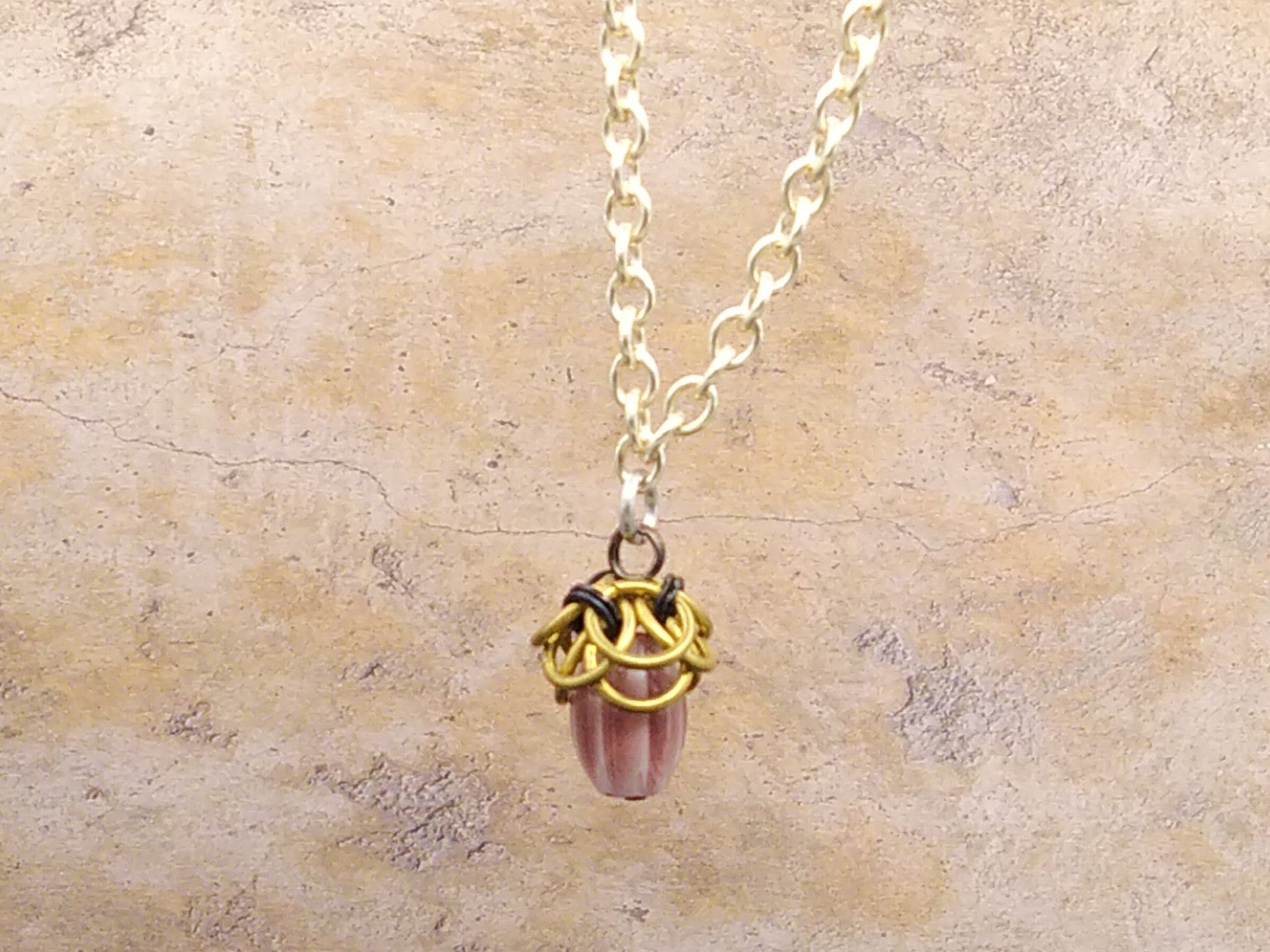 Een ketting gemaakt van aluminium ringen in zilver, rood en blauw. Dit stuk heeft twee dubbelzijdige armbanden die komedie en drama uitbeelden, zeer bekende theatermaskers die teruggaan tot 500 voor Christus.