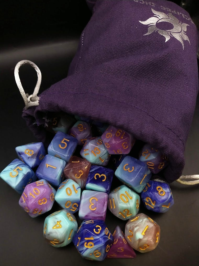 Een buidel vol losse Eclipse Starstruck dobbelstenen in vier kleuren met een gewicht van ongeveer 500gram.