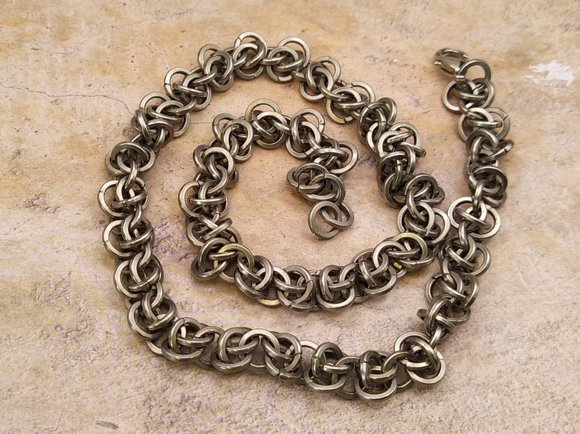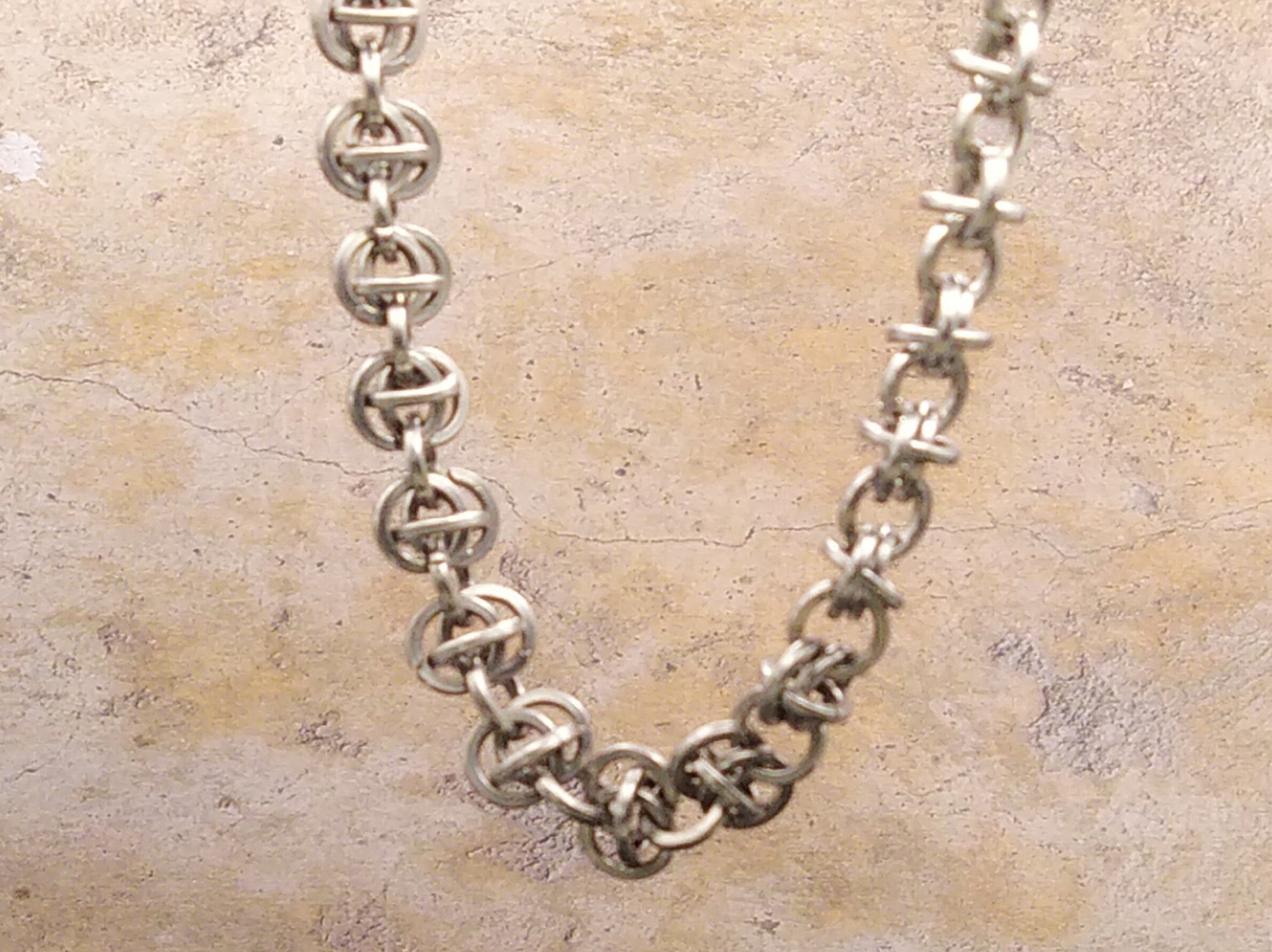 Een ketting gemaakt met vierkant RVS ringen, de lengte is ongeveer 44cm lang.