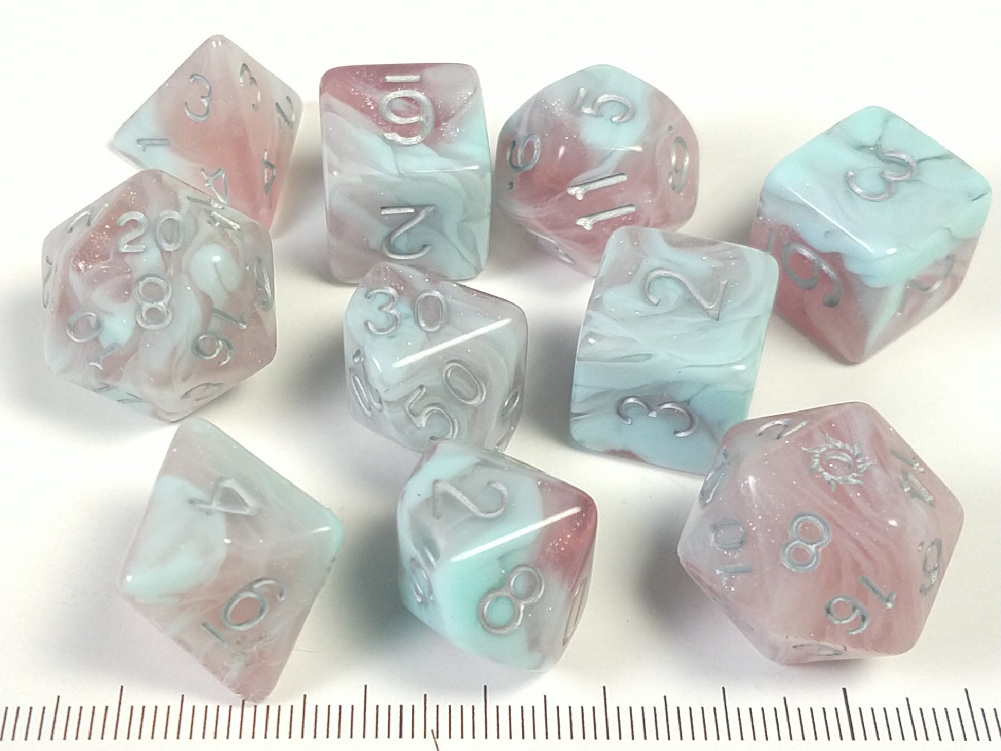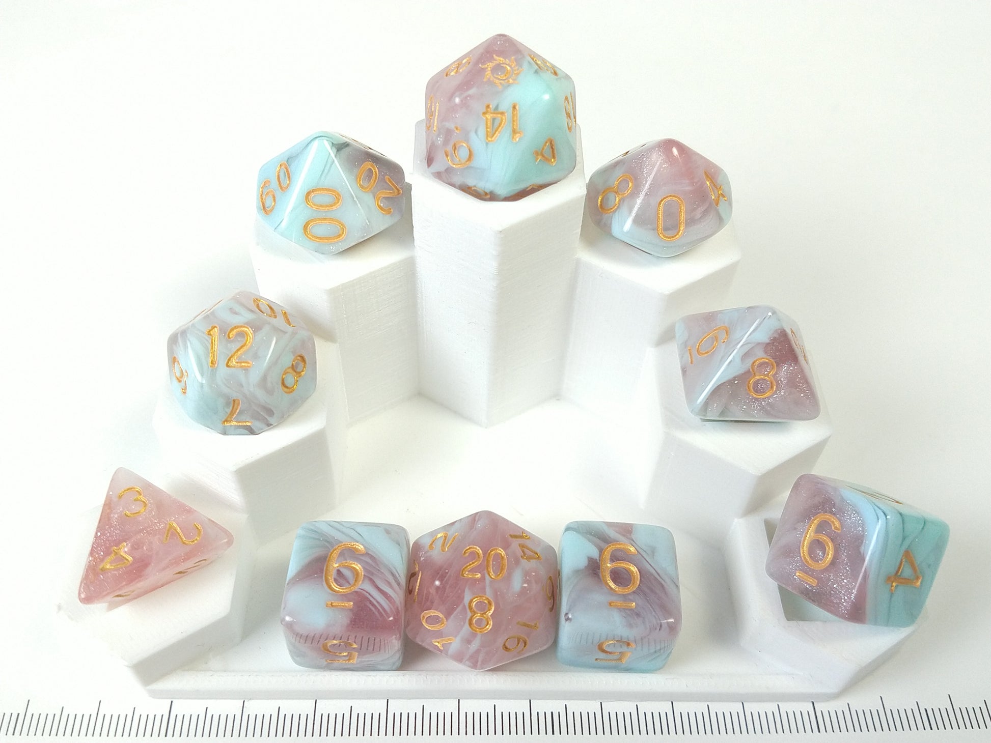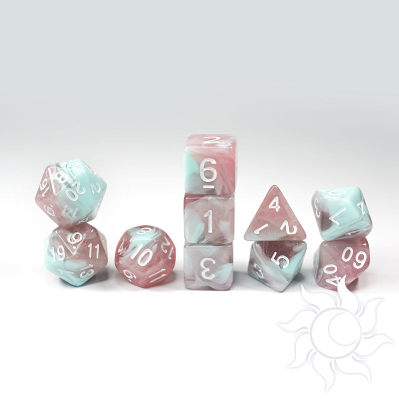 The Starstruck collection is Eclipse Dice's first collection of polyhedral dice. These lovely polyhedral dice were inspired by the beautifully colored backgrounds of one of the most influential anime series of the 90s: Sailor Moon.Â