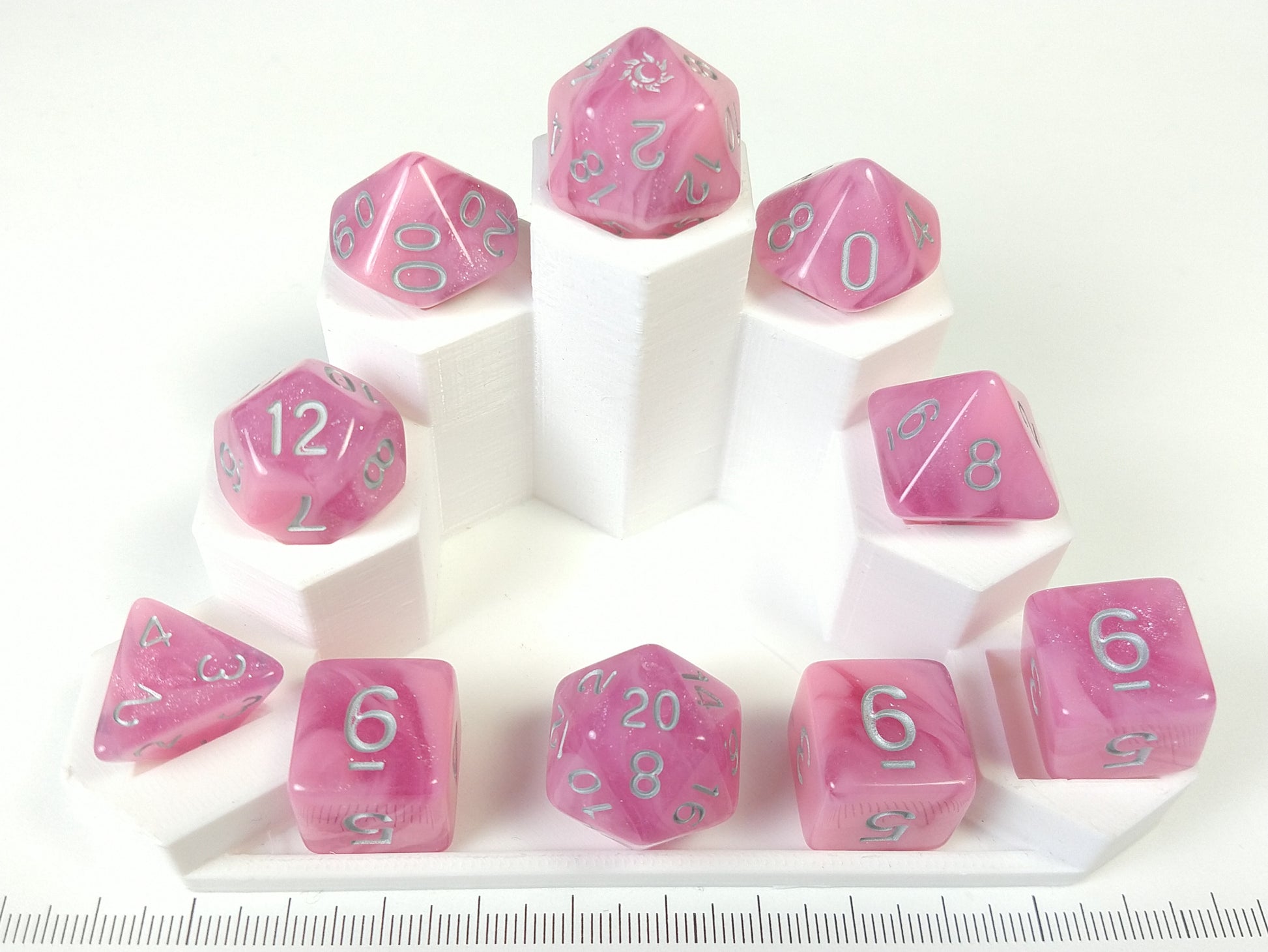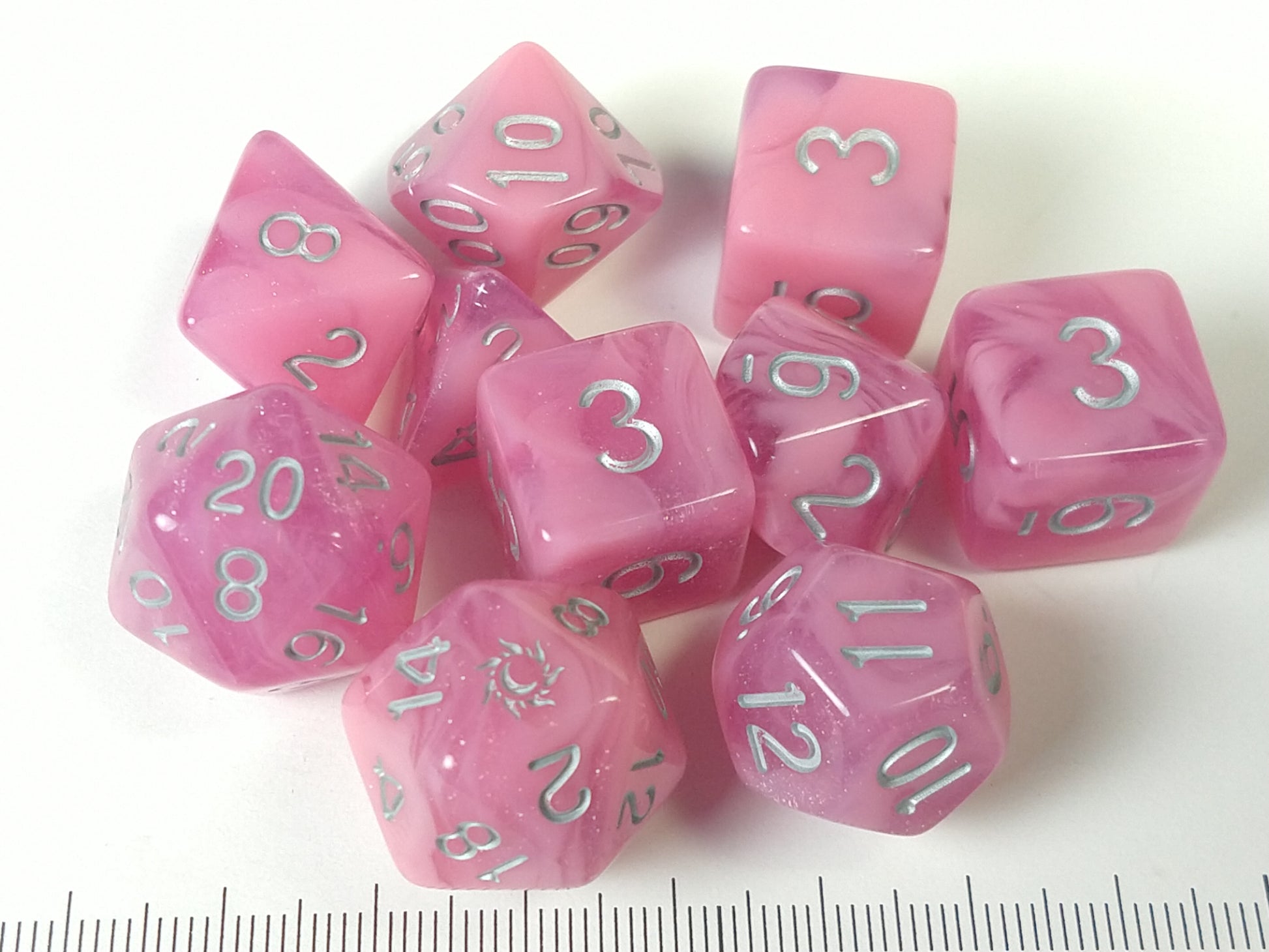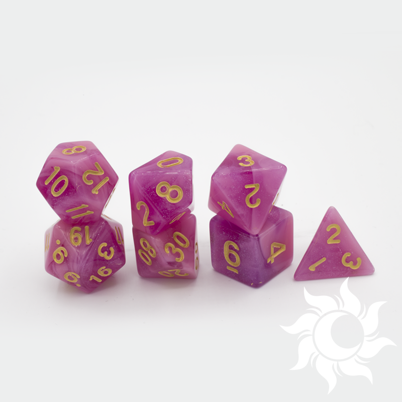 The Starstruck collection is Eclipse Dice's first collection of polyhedral dice. These lovely polyhedral dice were inspired by the beautifully colored backgrounds of one of the most influential anime series of the 90s: Sailor Moon.Â